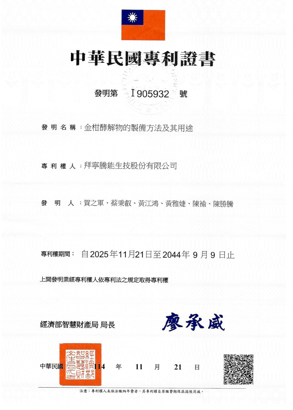 含金柑酵解物與植物椊取物複合物之奈米微粒專利
